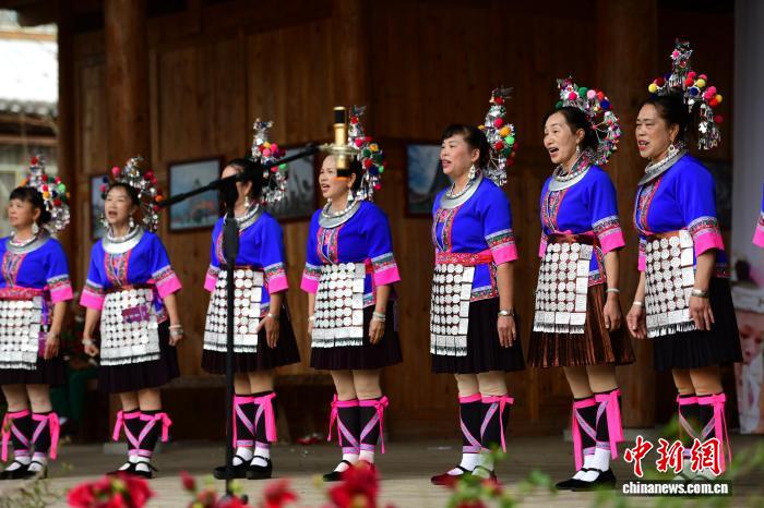 图为村平易近正在侗年庆贺举动演出唱侗族年夜歌。于琳钰 摄
