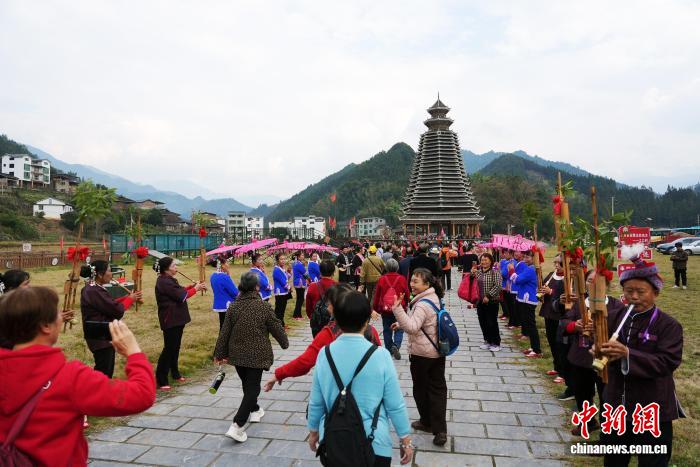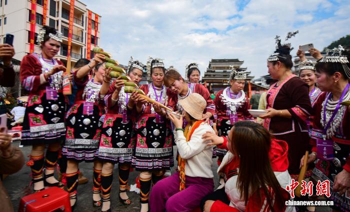 图为浩繁乘客前去体认侗年节。于琳钰 摄