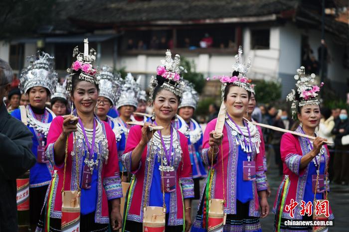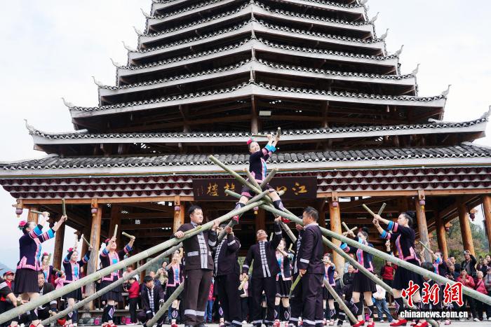 图为本地侗族同族取去自湖北通谈、柳州3江等天的侗族同族悲散1堂,启铺风气巡回。陆恒江 摄